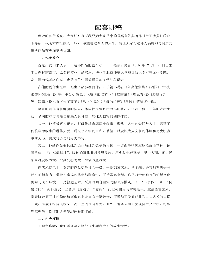该演示文稿以幻灯片的形式分四个部分介绍了《生死疲劳》的内容,方便我们在使用PowerPoint时更好的对书中重要的句子进行摘抄。PPT模板的第一部分是作者简介,介绍了莫言的基本信息。第二部分是内容梗概,介绍了《生死疲劳》的构思、契机以及灵感来源。第三部分是作品鉴赏,进一步分析了作品的主题与作品的艺术特色。第四部分是评价感悟,呈现了王德威教授、史景迁学者、司马中原等名人对这部小说的评价。