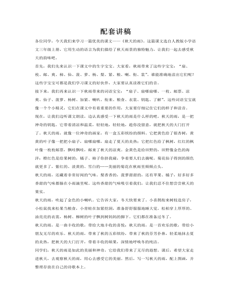 PPT模板内容主要通过PowerPoint软件分几个部分来向我们展开介绍有关"人教版三年级语文《秋天的雨》"课件的相关内容,共计20张幻灯片。PPT模板内容第一部分主要是有关本篇文章的预习部分,包括重点字词和文章的大概内容。第二部分主要是带领同学们初步朗读文章。第三部分主要带领同学们分析本篇文章的总体结构。第四部分则要求同学们背诵重点段落。