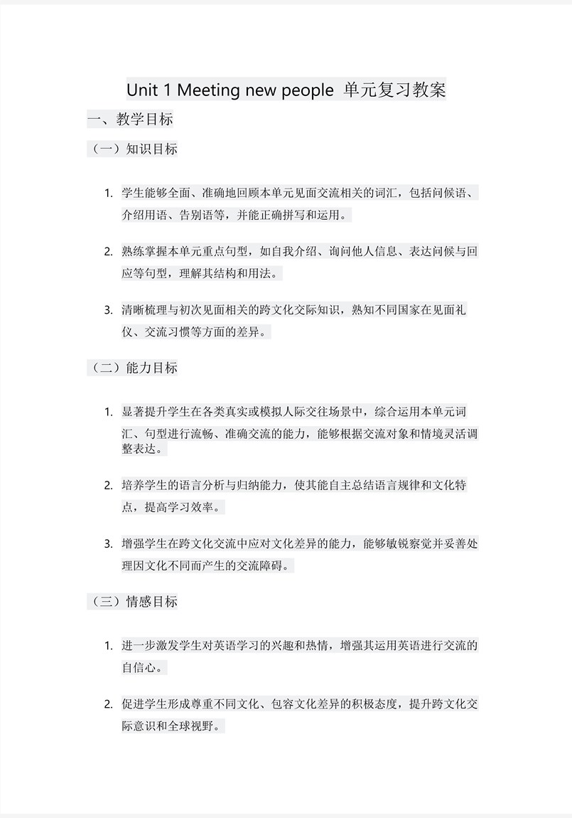 这是一套专为三年级英语下册Unit 1 Meeting new people单元复习课设计的演示文稿,共包含28张幻灯片。本堂课旨在通过系统的复习,帮助学生全面回顾本单元的核心词汇和句型,进一步巩固知识内容,并熟练掌握其结构与用法。此外,通过引导学生总结英语语言中的规律,不仅能够培养他们的知识归纳能力,还能提升他们的学习能力,从而有效提高学习效率。同时,本课还注重增强学生的跨文化交际意识,帮助他们在语言学习中更好地理解不同文化背景下的交流方式。 这份PowerPoint由四个部分组成。第一部分是知识梳理。在这一环节,首先对语音知识进行了简要介绍,帮助学生复习和巩固发音规则。接着,重点呈现了本单元的核心词汇和句型,通过清晰的展示和讲解,帮助学生加深对这些知识的记忆。最后,通过拓展和巩固练习,进一步强化学生对知识的理解和应用能力,确保他们能够熟练运用所学内容。 第二部分是知识巩固。这一部分分为基础训练和培优提升训练两个层次。基础训练包括选择题、判断题和填空题,这些题目旨在帮助学生巩固本单元的基本知识点,检验他们对词汇和句型的掌握程度。培优提升训练则包括匹配题、连词成句和短文填空,这些题目更具挑战性,旨在帮助学生提升语言综合运用能力,培养他们的思维能力和创造力。 第三部分是知识总结。在这一环节,教师将对本单元的重点内容进行系统总结,帮助学生梳理知识脉络,进一步加深对所学内容的理解和记忆。通过总结,学生可以更清晰地认识到本单元的核心知识点,以及它们之间的内在联系,从而构建完整的知识体系。 第四部分是课后作业。在这一环节,教师布置了与本单元复习内容相关的课后作业。这些作业旨在帮助学生在课后继续巩固和拓展所学知识,同时为下一阶段的学习做好准备。通过完成作业,学生可以进一步提高语言运用能力,加深对知识的理解和掌握。 总的来说,这套演示文稿内容丰富、结构清晰,通过系统的复习和多样化的练习,帮助学生全面巩固本单元的知识内容,提升他们的语言综合运用能力。同时,通过培养学生的知识归纳能力和跨文化交际意识,为他们的英语学习打下坚实的基础,助力他们在未来的英语学习中取得更好的成绩。