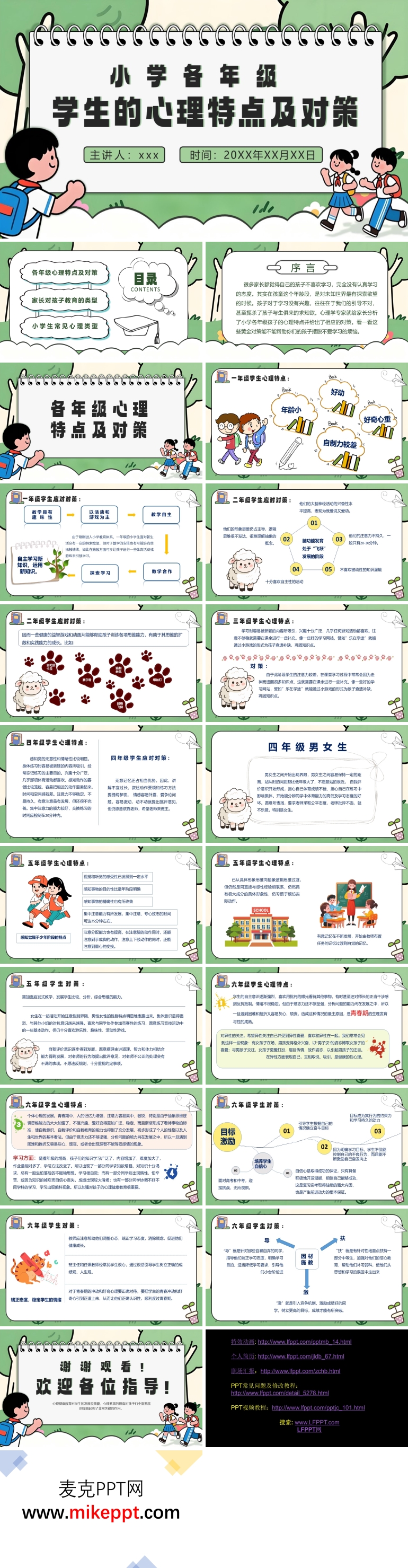 PPT模板内容主要通过PowerPoint软件几个部分来向我们展开介绍有关于小学生各年级心理特点的相关内容。PPT模板内容第一部分主要向我们详细的讲解了各年级心理特点及对策的相关内容,比如说一年级小朋友的心理特点包括好动、好奇心重以及自制力差等等。第二部分主要向我们详细的讲解了有关于家长对孩子教育的主要类型。最后一部分主要向我们着重的讲解了有关于当代小学生常见的心理类型。