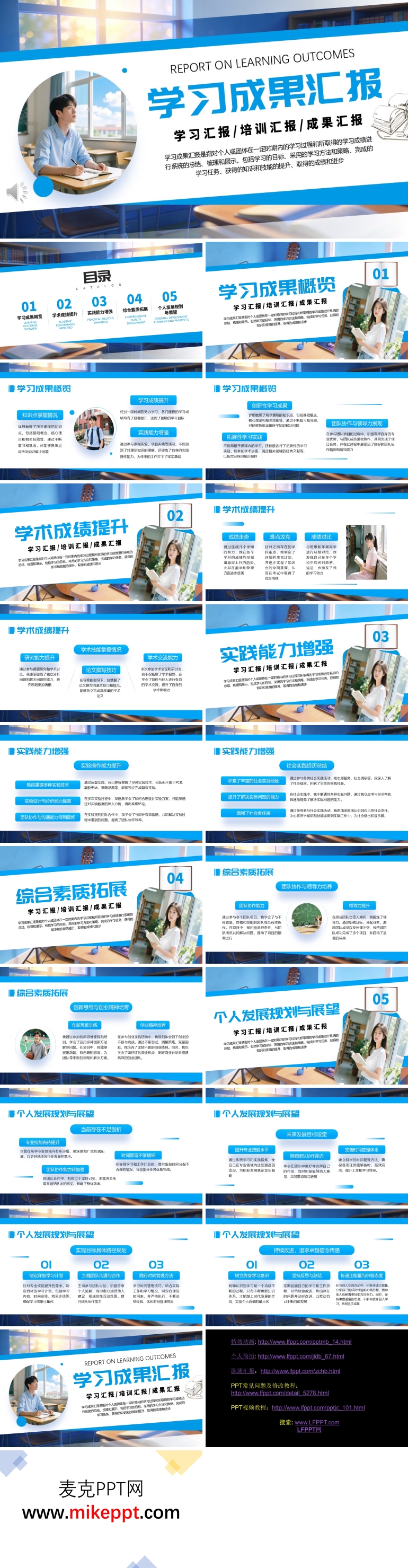 在高等教育阶段,系统性的学习成果汇报不仅是对过往努力的阶段性总结,更是促进自我认知深化与未来路径明晰的关键环节。通过为期一阶段的学习与实践复盘,学生能够精准把握自身优势与短板,在动态调整中不断完善知识架构与能力体系,这种持续的自我迭代过程,为后续学术深耕与职业发展筑牢根基。作为新时代大学生,我们承载着社会发展的殷切期望,既要着力培育科学高效的学习方法论,养成自律勤勉的生活节律,更要聚焦核心竞争力的锻造——这意味着需要将有限精力聚焦于专业知识的深度消化、关键技能的反复淬炼以及创新思维的自觉培养,唯有如此,方能在激烈的竞争中脱颖而出。 清晰的生涯规划如同灯塔,为大学生活注入目标感与驱动力。本次汇报PPT精心设计了五个递进式板块:首部分"学习成果概览"以全景视角呈现知识吸收度与能力跃迁轨迹;第二部分"学术成绩提升"通过数据可视化手段,客观分析成绩波动趋势、重点难点突破策略及横向对标情况;第三部分"实践能力增强"着重阐述实验操作、项目执行等动手能力的进阶路径,并提炼社会实践活动中的真实感悟;第四部分"综合素质拓展"则聚焦领导力、团队协作、人文素养等软实力的多维成长;最终章"个人发展规划与掌握"回归主体性,明确阶段性目标与长期愿景的衔接逻辑,确保每一步前行都踏实有力。这五大模块环环相扣,共同构建起大学生成长评估的立体坐标系,指引我们在知行合一的道路上稳步迈进,最终实现从学业精进到人格完善的全方位蜕变。