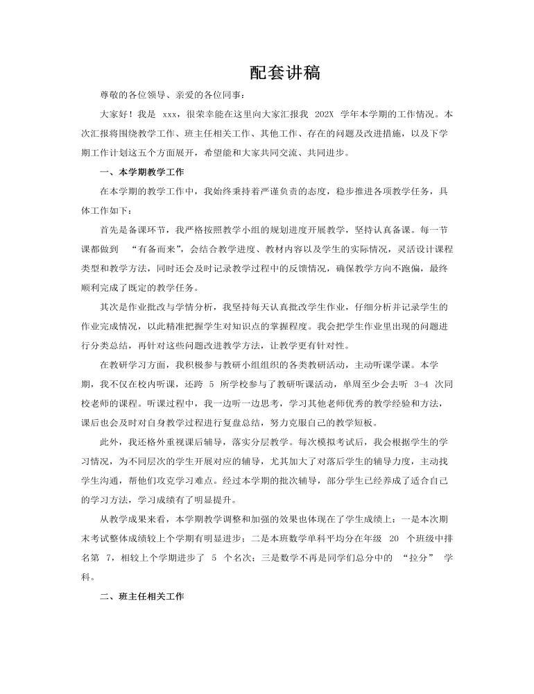 这套PPT是“某某某学校2026年教师工作期末总结”,主题为“用爱履行责任,用心承载教育”,整体设计兼具专业性与活泼感。它以清晰的目录页为纲,分为五大板块系统回顾了教师一学期的工作。 内容上,PPT首先重点汇报了本学期教学工作,核心是“认真备课、精心批改”,强调了严格按教学计划备课、因材施教及注重教学过程的科学性与艺术性。其次,在本学期相关工作中,涵盖了班主任工作,如培养学生习惯、组织活动,以及参与教研等事务。随后,它没有回避问题,而是专门对存在问题进行了分析,并提出了相应的改进措施,展现了反思精神。最后,PPT着眼于未来,阐述了下学期工作计划,明确了如提升教学能力等发展方向。 视觉上,PPT采用蓝、紫、橙等明快色块构成背景,版面清晰,搭配卡通教师形象和教学场景插图,使严谨的工作总结显得生动、直观,全面呈现了一位教师在本职工作、班级管理和专业发展上的尽责思考与成长轨迹。