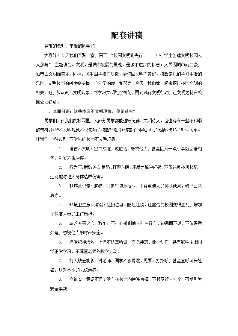这套 PPT 是为中小学生量身定制的“校园文明礼先行”主题班会材料,以“文明从点滴践行”为核心理念,通过三个模块的系统设计,引导学生树立文明意识,营造和谐的校园环境。 首先,PPT 从“校园不文明现象”入手,列举了出口成脏、插队、乱扔垃圾、课堂散漫等常见的不文明行为,并通过互动提问“身边的不文明现象”,激发学生的思考,引导他们反思自身及周围同学的日常行为。这种贴近生活、直击问题的方式,能够迅速引起学生的共鸣,为后续的文明教育奠定基础。 接着,PPT 进入“学习‘八礼四仪’”模块,详细拆解了“八礼”(包括餐饮、游览、仪表等八类日常礼仪)的具体规范,并深入讲解了“四仪”(入学、成长、青春、成人仪式)的内涵。通过系统化的知识讲解,让学生明确校园文明的行为标准,帮助他们从理论层面理解文明礼仪的重要性,为文明行为的养成提供清晰的指引。 最后,PPT 以“勿以恶小而为之”这一古语为切入点,进入“创建文明校园从我做起”模块。结合古语的智慧,PPT 给出了讲礼貌、守纪律、爱学习等具体行动建议,并呼吁全体学生从自身做起,从点滴小事做起,共同养成文明习惯。这种从理论到实践的递进逻辑,不仅让学生明白文明礼仪的意义,更鼓励他们将文明行为落实到日常生活中。 整套 PPT 风格活泼,色彩鲜明,语言简洁易懂,充分适配中小学生的认知水平。通过“现象反思 - 标准学习 - 行动落地”的递进逻辑,PPT 不仅帮助学生认识到校园不文明现象的危害,还为他们提供了明确的文明行为准则和具体的行动指南,助力学生树立校园文明意识,推动文明校园的建设。