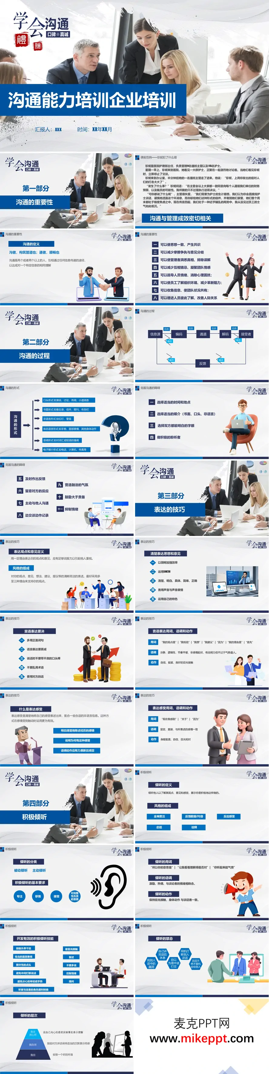 这套沟通培训PPT通过图文结合的方式系统性地阐述了沟通的核心理念与实用技巧。文档开篇以医院护理部主任珍妮的案例切入,生动展示了沟通不当可能引发的团队矛盾,强调沟通与管理成效的紧密关联。该案例直观呈现了沟通方式选择对员工情绪的影响,为后续理论展开奠定实践基础。 PPT主体部分分层解析了沟通全过程:首先界定沟通的本质是"构筑管道"与"顺畅传递",并列举八项沟通价值,如减少分歧、凝聚团队等;进而剖析沟通形式(口头、书面、非语言等)及障碍克服方法,强调及时反馈与氛围营造的重要性。在技巧层面,文档重点突出了表达与倾听的双向互动——表达时需结合5W2H法则保持简洁明确,倾听时则要求专注、移情与完整性反馈,其中积极倾听的四个层次(环境营造、鼓励互动、情感共鸣、深度理解)通过动作要领与禁忌对比清晰呈现。 最后章节聚焦沟通的升华策略:通过建立共同点(目标、价值观等)构建信任基础,运用成人型对成人型的平行交往模式实现高效对话,并引入激励理论、期望陈述等管理工具,形成从个人表达到团队协作的闭环逻辑。整体内容层层递进,将抽象沟通理论转化为可操作的行为指南,兼具理论深度与实践指导性。