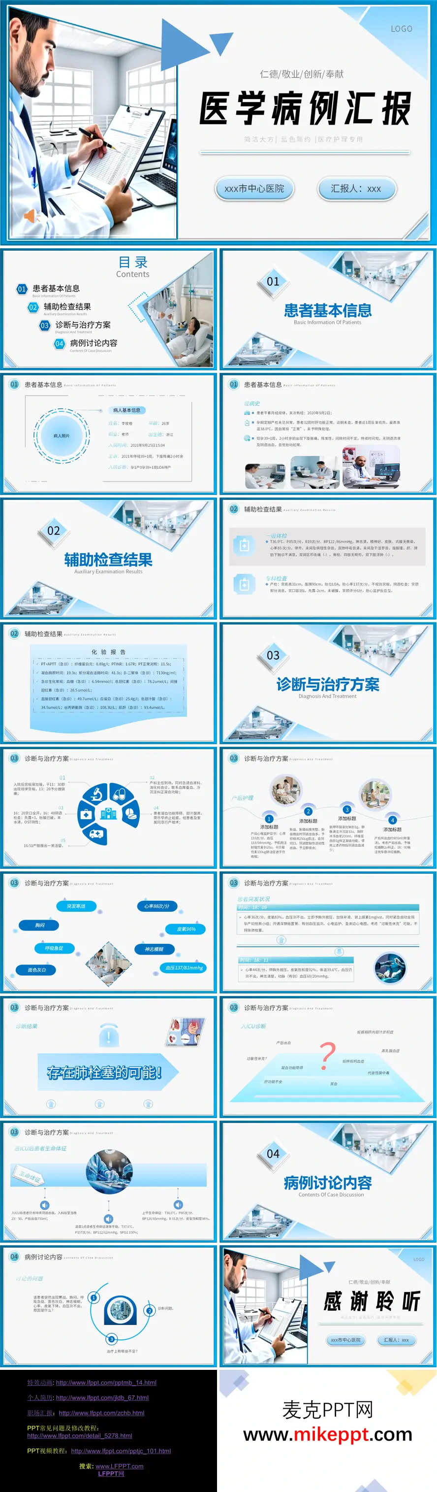 这套PPT是xxx市中心医院的一份医学病例汇报,主题为一位26岁孕妇李玫橙的诊疗过程。整体设计采用蓝色简约风格,符合医疗护理的专业定位。 PPT内容主要分为四个部分:患者基本信息、辅助检查结果、诊断与治疗方案以及病例讨论。患者因“停经39+1周,下腹阵痛2小时余”入院待产,入院检查发现凝血功能异常、胆汁酸升高及肝功能不全。在生产过程中,患者出现产后出血,经产钳助产、输血及药物纠正凝血功能后,产后出血量达800ml。更为危急的是,产后患者突发心率骤降、血压测不出等休克症状,经抢救后转入ICU,诊断为产后出血、凝血功能障碍、妊娠期肝内胆汁淤积症等,并疑诊肺栓塞。 病例讨论部分重点探讨了患者突发休克的原因、诊断准确性及治疗中的不足。整套PPT系统呈现了病例的临床过程与救治难点,体现了医院多科室协作应对危重孕产妇并发症的流程。