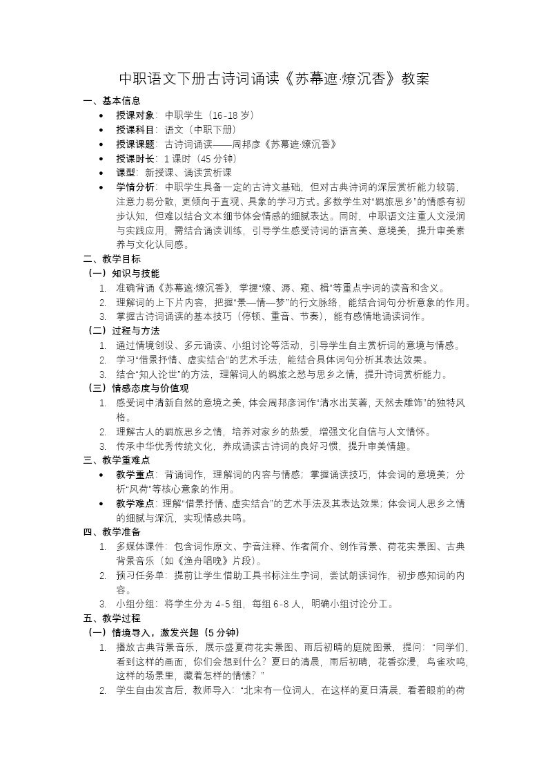 这是范仲淹《苏幕遮·碧云天》语文教学课件,共35页,采用秋日古风设计,适配初中/高中宋词课堂。以任务驱动搭建教学框架:导入与目标以秋景引发情感共鸣,明确语言理解、意象鉴赏等素养目标。分层教学任务分五项:任务一"因声求气",完成词牌解题、文学常识、注音释义与朗读,扫清文言障碍;任务二"以意逆志",逐句解读词作,分析"碧云""黄叶"等意象,赏析借景抒情、移情于景的手法,体会沉郁雄健的基调与羁旅乡愁;任务三"知人论世",介绍范仲淹生平、边塞背景,帮助学生理解创作心境;任务四"对比阅读",与周邦彦《苏幕遮》对比,分析不同词作中乡愁意象的差异;任务五"随堂检测",通过默写巩固知识点,最后布置意象描写作业。